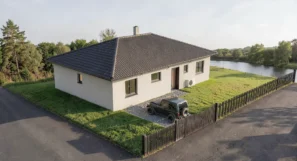 | Základová deska | Betonové pasy šířka 60 cm, 2x ztracené bednění 30 cm, hloubka 100 cm, betonová deska 10 cm vyztužená kari sítí 6x150x150, zateplená 6 cm XPS 60 cm výška, zemnící pásek |